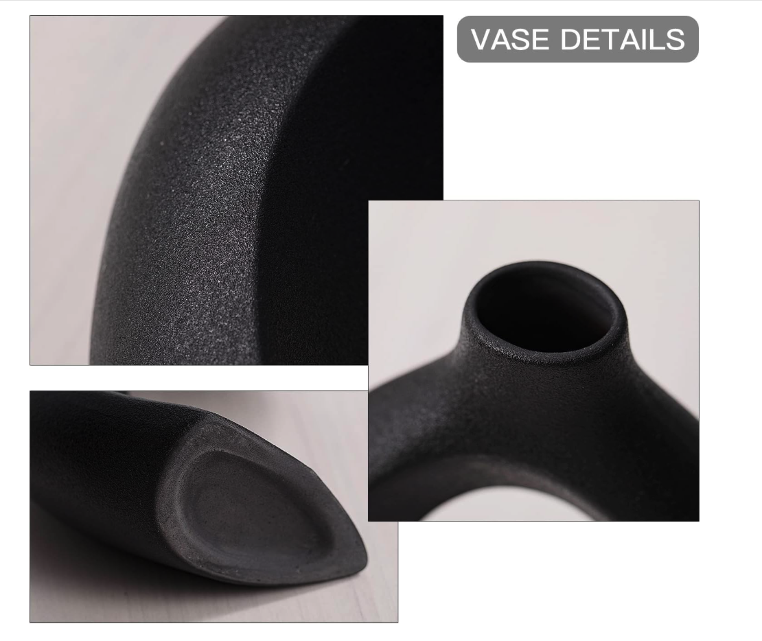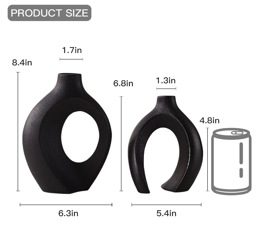• ?【Dimensions】 - 2 beautiful matte off-black handmade vases, taller size (W 6.3" X H 8") neck opening 1.3", shorter size (W 5.4" X H 7") neck opening 0.9", Due to the nature of ceramic products, being handmade and fired at high temperatures, it is impossible to maintain consistency in color and size for each piece. As a result, each color set is unique, and slight variations in color are to be expected. We hope for your understanding and thank you for your support.