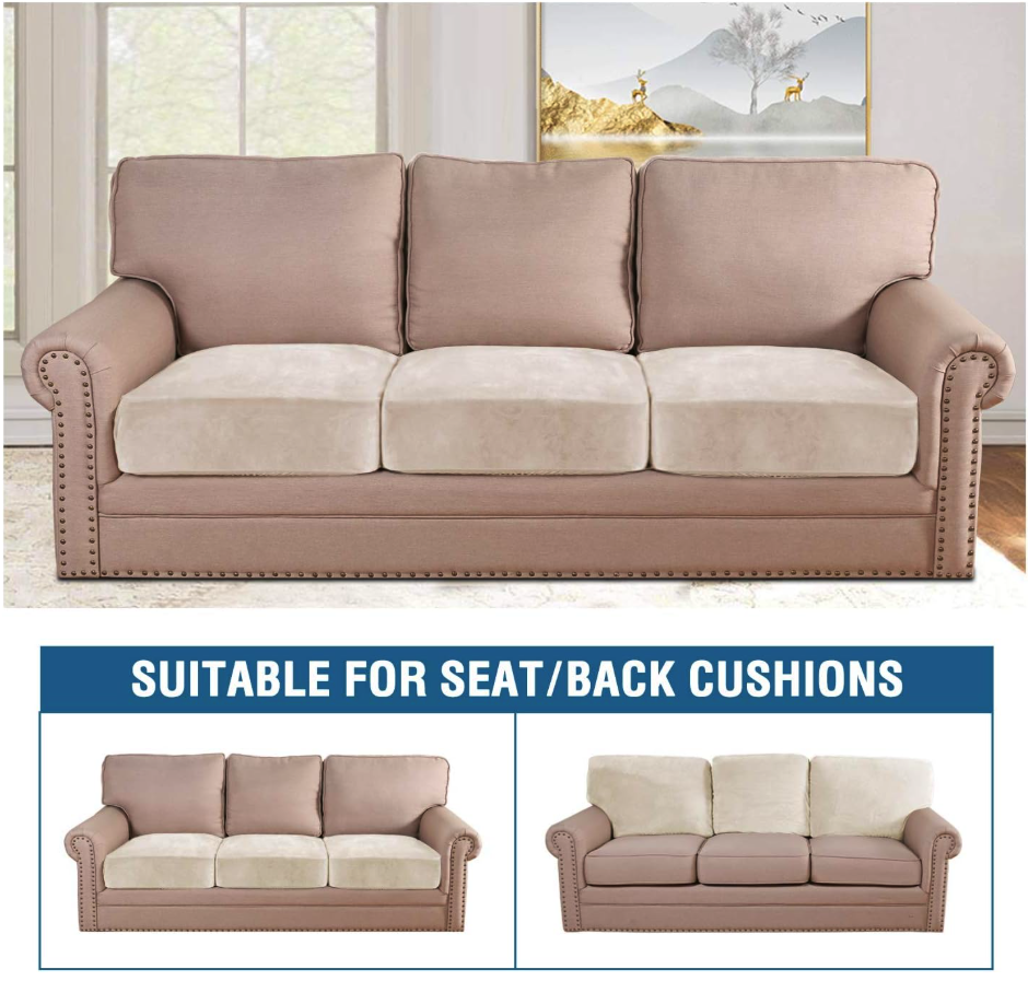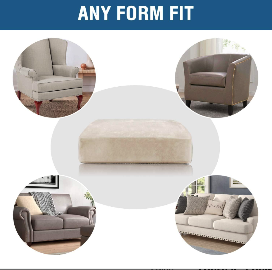 • ANY FORM FIT: Each cushion cover measures: 19.6-29.5" length, 21.6-30.5" width and 2-10" height. It's crafted from a unique extra stretchy fabric, perfect for regular square cushions, T-cushions and also L-cushions, used to cover not only the seat cushions of your sofa, but also the back cushions as long as they can be separated from the sofa