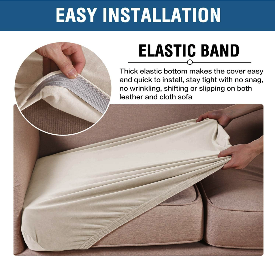 • STAY IN PLACE: Featuring non-skid thick elastic bottom, our cushion slipcover can stay tight with no snag, no wrinkling, shifting or slipping on both leather and cloth sofa. Check the installation guide carefully, it can be finished within 3 minutes by one person. It is very easy to put on and take down. (Installation Instructions Included)